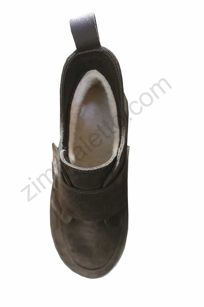 Є в наявностіСтильні темно-коричневі замшеві черевики на ліпучці. Носок круглий. Легка темно-коричнева підошва товщиною 3 см. Всередині овчина.